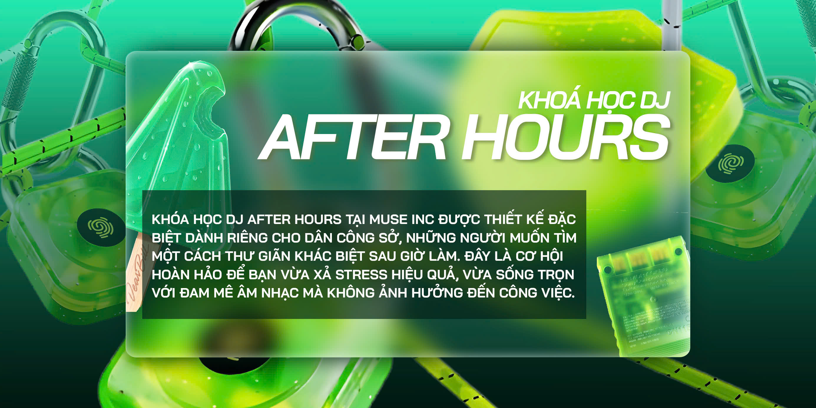 Khóa học DJ After Hours tại MUSE INC được thiết kế đặc biệt dành riêng cho dân công sở, những người muốn tìm một cách thư giãn khác biệt sau giờ làm. Đây là cơ hội hoàn hảo để bạn vừa xả stress hiệu quả, vừa sống trọn với đam mê âm nhạc mà không ảnh hưởng đến công việc.