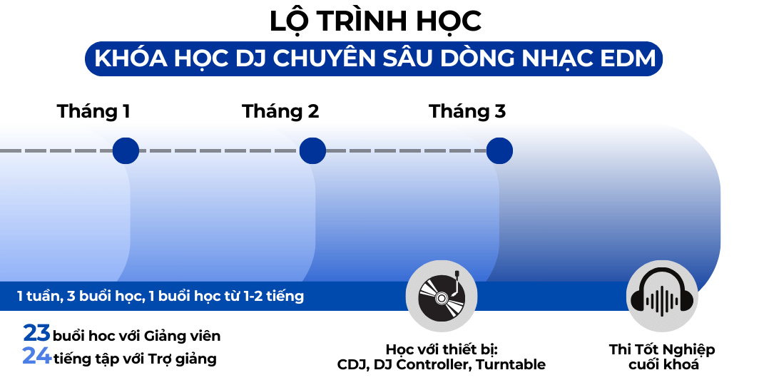 Nắm vững kỹ thuật DJ chuyên nghiệp: Khóa học chuyên sâu giúp bạn hiểu rõ và thành thạo các kỹ thuật mix, beatmatching, cueing, effect… – những kỹ năng cốt lõi để biểu diễn EDM chuyên nghiệp.