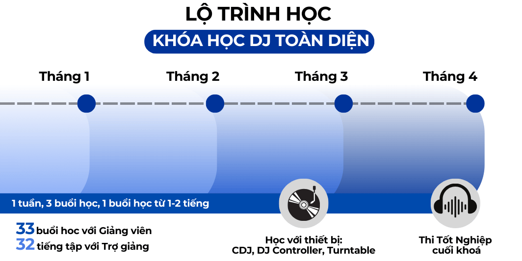 Khóa học DJ Toàn Diện sẽ là bước đệm vững chắc giúp bạn biến đam mê thành sự nghiệp thực thụ. Với lộ trình đào tạo bài bản, học viên sẽ được trang bị kiến thức âm nhạc chuyên sâu và xây dựng phong cách cá nhân độc đáo. Sau khi hoàn thành khóa học, bạn hoàn toàn có thể tự tin biểu diễn tại các club, sự kiện âm nhạc hoặc theo đuổi sự nghiệp DJ chuyên nghiệp một cách nghiêm túc và bền vững.